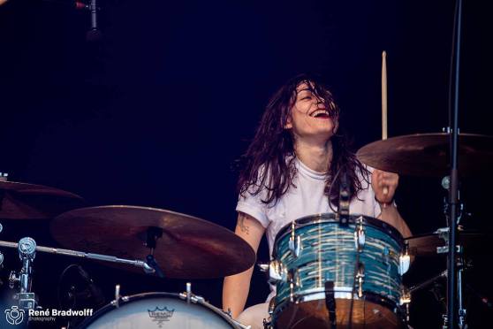 En toen… was het tijd voor Le Butcherettes. Getuige de plotsklapse publieke aanwas bleken er nogal wat mensen speciaal voor deze Mexicaanse wervelwind naar Elsloo te zijn gereisd. En dat is volledig begrijpelijk, want een show van dit kaliber is zeldzaam. Vanwege de combinatie van de wilde, net zo inventieve als verpletterende garagepunk en de spectaculaire zangeres/gitarist/toetsenist Teri Gender Bender, die alle aandacht naar zich toe trok. Maar ondertussen werd er rondom haar adembenemend spannend en retestrak gemusiceerd. Toetsenist Riko en bassist Marfred Rodriguez Lopez zijn niet voor niets broertjes van Omar en Marcellus van (onder anderen) The Mars Volta. Gecompleteerd door de wild meppende superdrumster Alejandra Robles Luna resulteerde dit alles in een show die de aanwezige geluksvogels niet snel zullen vergeten.